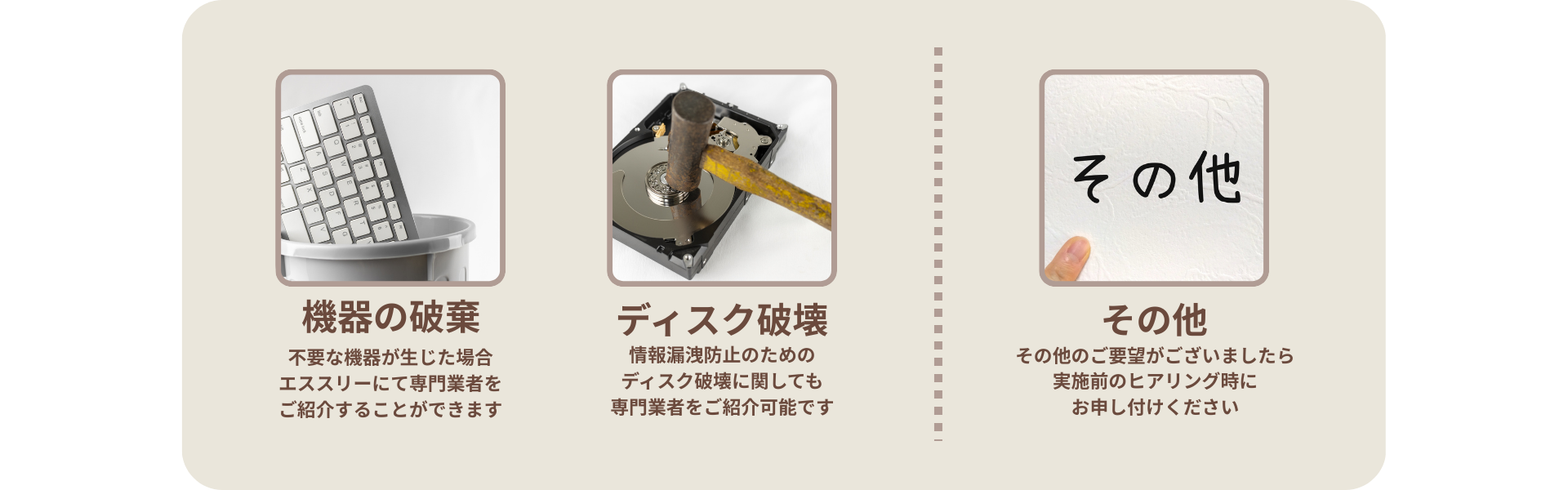 エススリーでは主に導入設定から展開までをトータルサポートすることを重きに捉えておりますので、